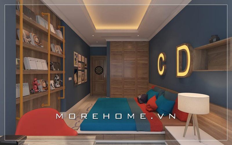 Thiết kế phòng ngủ bé trai tại chung cư hiện đại, nội thất được sắp xếp hợp lí giúp con có thêm nhiều không gian để học tập và nghỉ ngơi