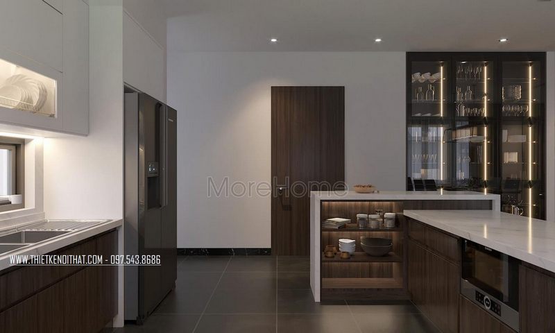 Bàn đảo bếp ốp mặt đá mang đến sự sang trọng, tinh tế và ấn tượng cho không gian bếp của mỗi gia đình.