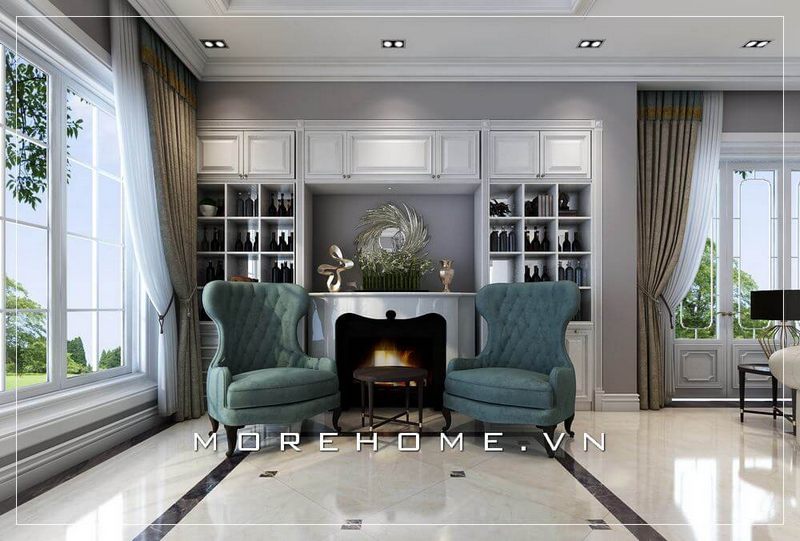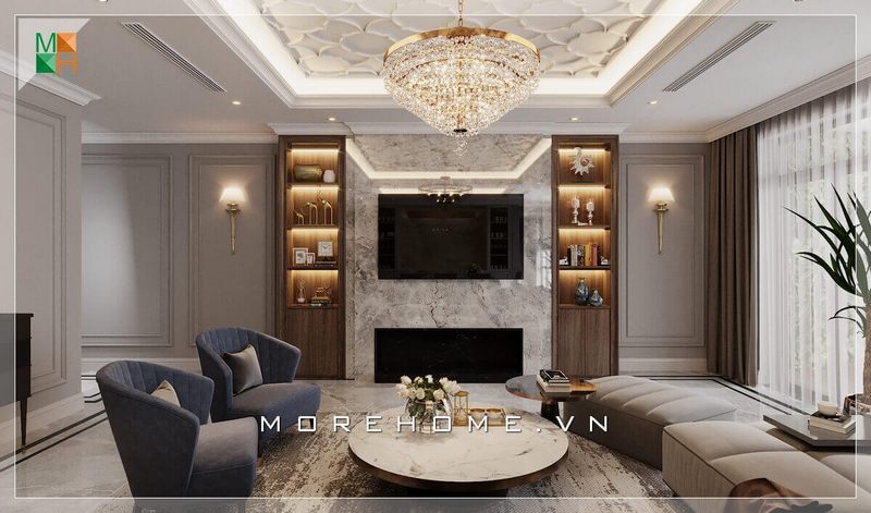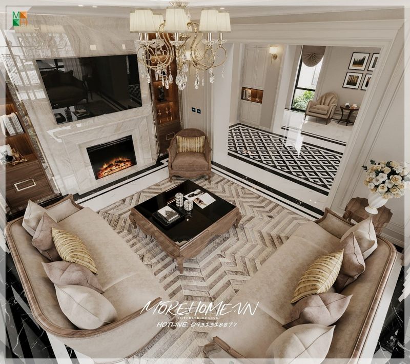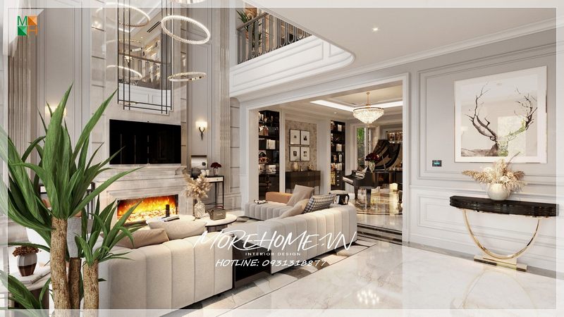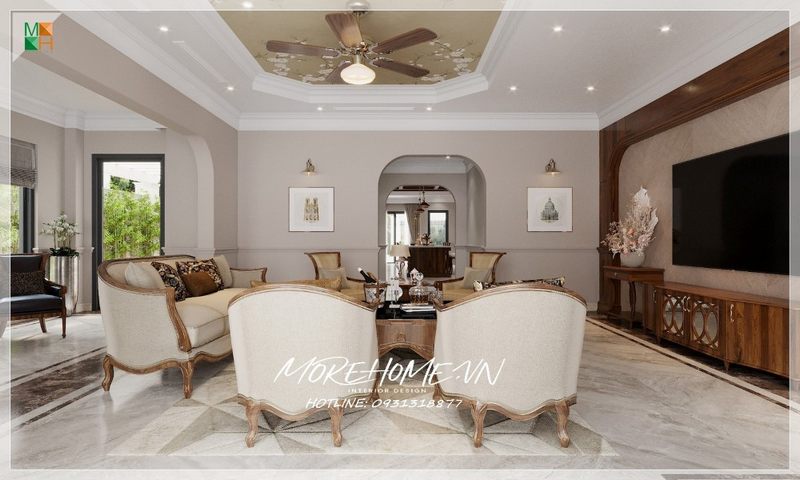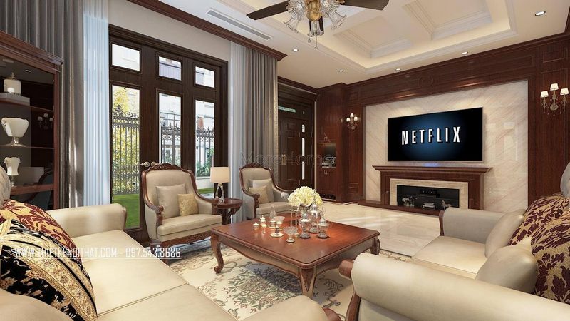 Mẫu thiết kế phòng khách biệt thự đẹp nội thất tân cổ điển với đường nét tinh tế mang vẻ đẹp sang trọng đẳng cấp