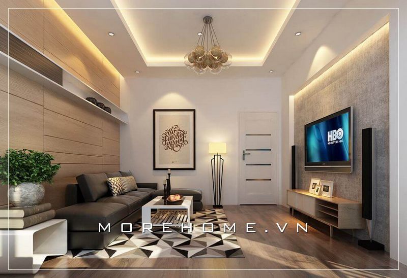 Trang trí phòng khách chung cư đẹp và ấn tượng hơn với giấy dán tường Hàn Quốc Morehome
