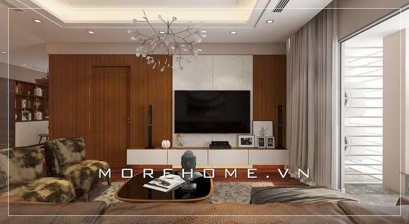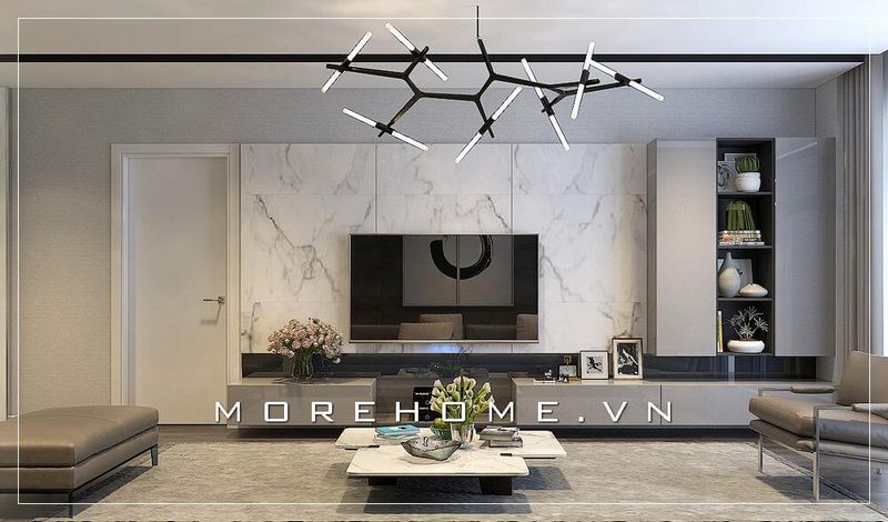 Kệ ti vi hiện đại và sang trọng là điểm nhắn trong căn phòng khách chung cư, thiết kế rất phù hợp cho diện tích căn nhà