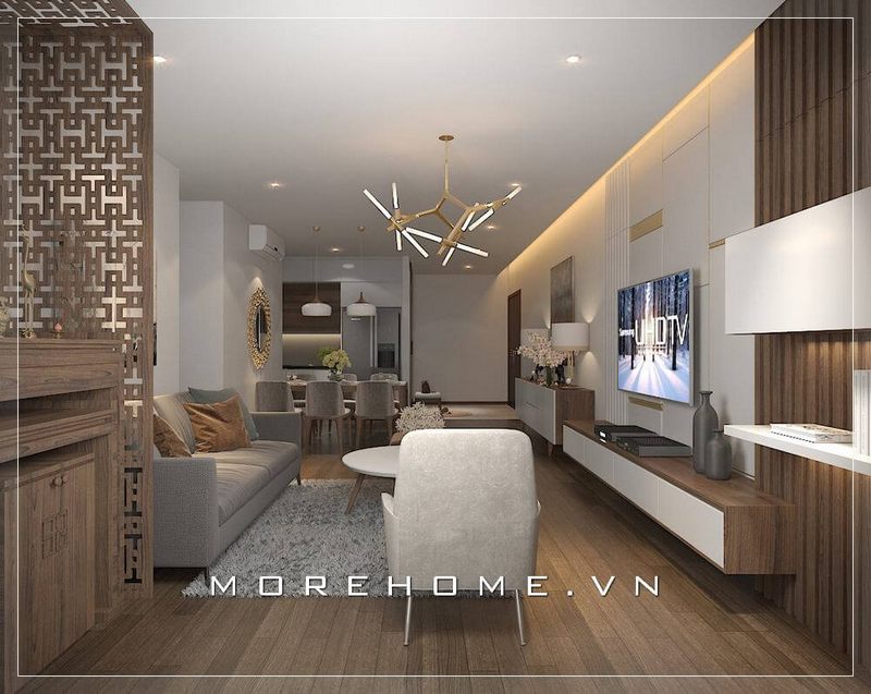 bố trí nội thất phòng khách chung cư ấn tượng mang đến không gian ấm úng và sang trọng