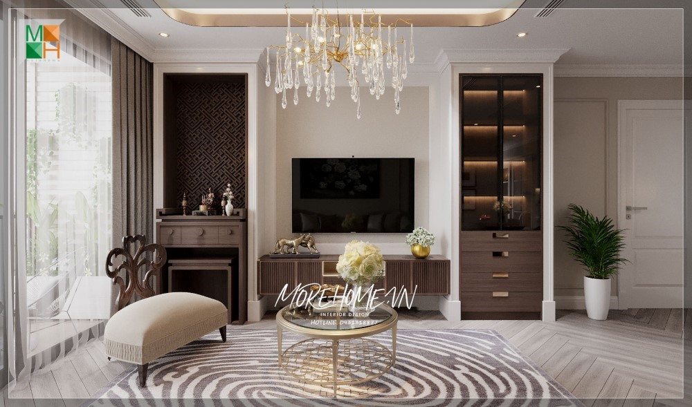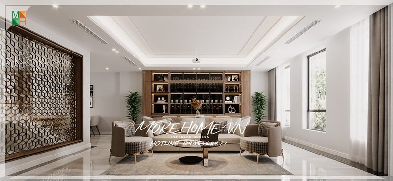 Công trình thi công đồ nội thất tân cổ điển đẹp, sang trọng cho phòng khách biệt thự FLC Thanh Hóa