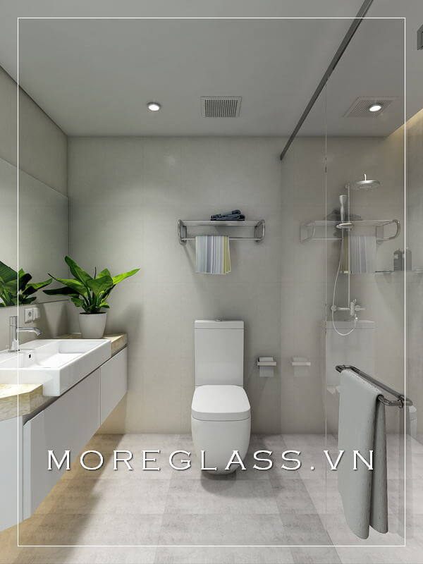 Mẫu thiết kế phòng tắm của căn hộ hiện đại kết hợp với gạch ốp màu trắng sẽ làm cho không gian trở nên rộng rãi hơn.