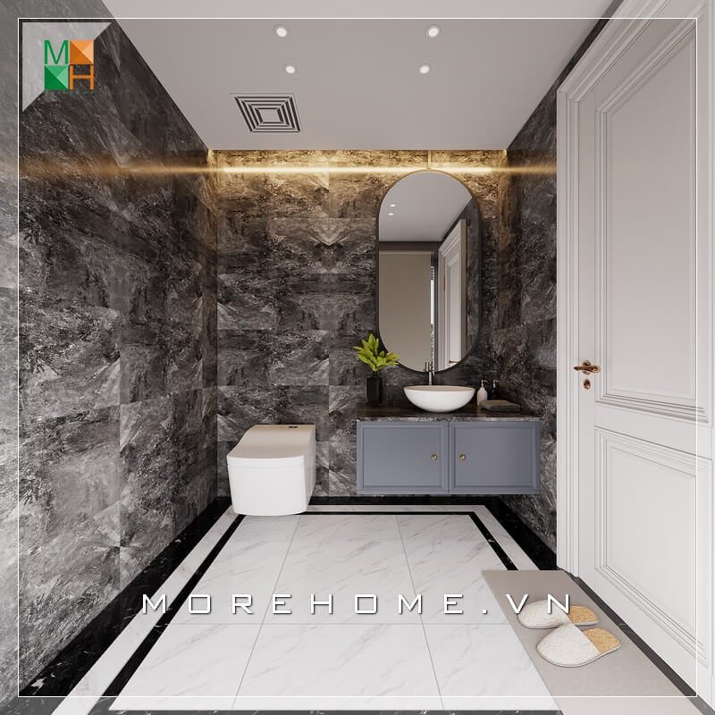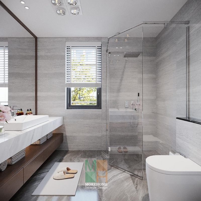 Sự kết hợp giữa đồng bộ gạch lát và ốp tường đẹp làm cho phòng tắm trở nên sang trọng và tiện nghi hơn.