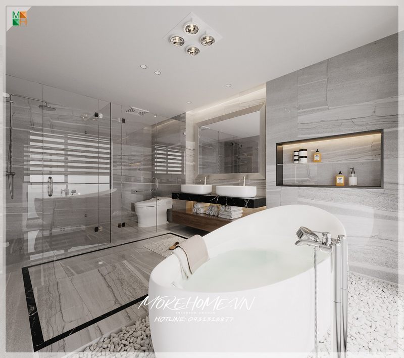Bằng cách tạo ra một phòng tắm ngăn nắp và tối giản, bạn đang tạo tiền đề cho sự thư giãn và yên tĩnh. Với từng yếu tố được lựa chọn và sắp xếp cẩn thận, từ đường nét gọn gàng của đồ đạc đến giải pháp lưu trữ đơn giản, mọi khía cạnh đều phối hợp với nhau để tạo ra một môi trường mang đến sự yên tĩnh cho thói quen của bạn. Áp dụng các nguyên tắc thiết kế tối giản có thể thực sự biến phòng tắm của bạn thành thiên đường cho sự bình yên và thanh thản.