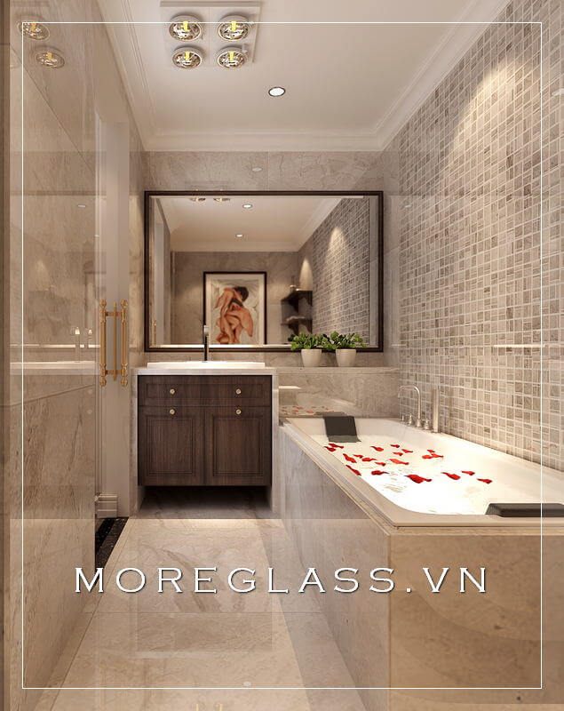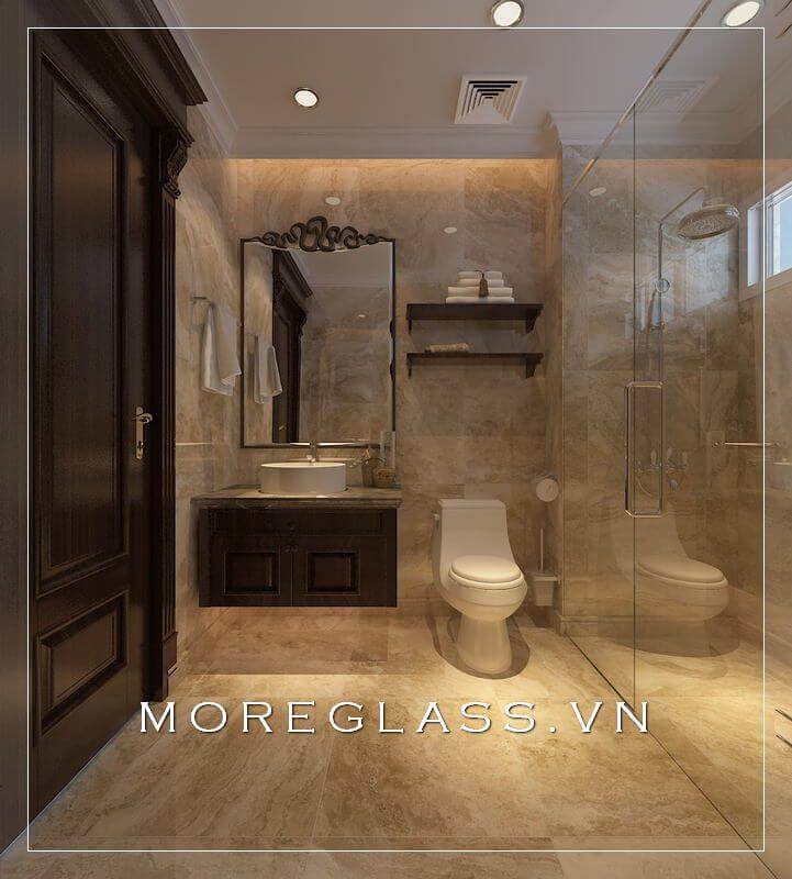 Sử dụng vách tắm kính cường lực để tạo ra một không gian phòng tắm hiện đại, độc đáo và đẳng cấp, giữa phòng tắm và phòng ngủ để tạo ra sự cách ly, sang trọng và tinh tế trong từng chi tiết.